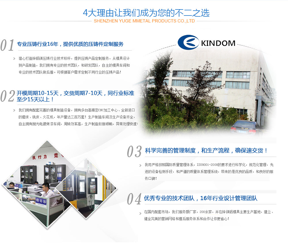 浙江錦恒金屬制品有限公司前身為海寧長命摩擦材料有限公司,創(chuàng)建于2002年,是一家集模具設(shè)計(jì)、制造、鋁合金、鋅合金壓鑄、沖壓加工、表面處理為一體的專業(yè)制造公司,為汽車、摩托車、沙灘車、燈具、網(wǎng)絡(luò)天線、監(jiān)控設(shè)備等行業(yè)提供精密壓鑄件及精密沖壓件。